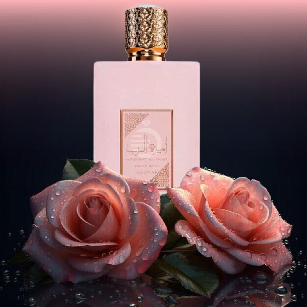Ameerat Al Arab Prive Rose | EDP | 100 ml | Asdaaf Con notas de salida de fresa, uvas y naranja, notas de corazón de rosa, almizcle blanco, gardenia, jazmín, ylang-ylang y azucena, y notas de fondo de ámbar,