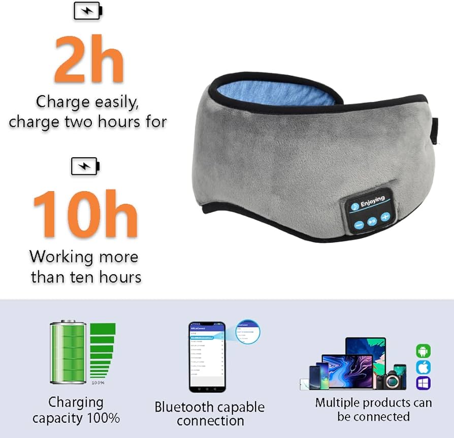 BIGFOX Antifaz de Música Bluetooth 5.0 - Altavoces Estéreo de Alta Definición, Reproducción Inalámbrica Durante 10 Horas, Duermen de Lado, Insomnio, Meditación