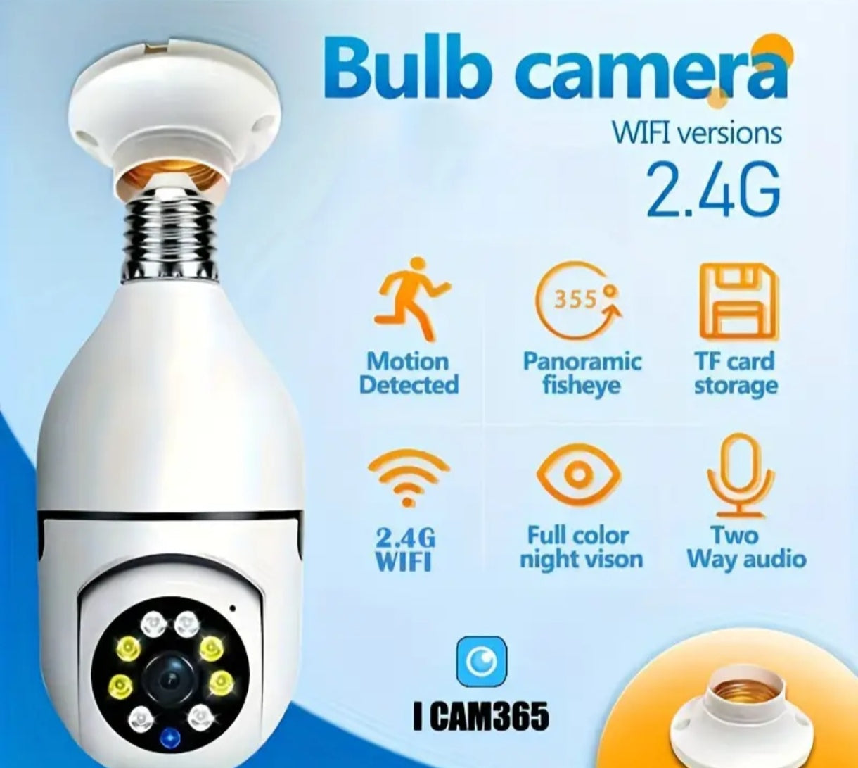 Cámara de bombilla E27, cámara de seguridad PTZ inalámbrica 1080p con conector de bulbo E27, panorámica de 360 grados, seguimiento automático de movimiento, visión nocturna y audio de dos