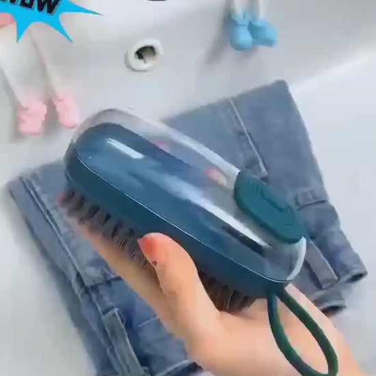 Dispensador de Jabón Autolimpiante con Cerdas Suaves para Zapatos, Sombreros y Ropa - Diseño Ergonómico en Verde Azulado y Blanco, Liberación de Espuma con Un Toque, Herramienta Portátil Manual para Lavandería y Accesorios, Mango de Plástico Duradero