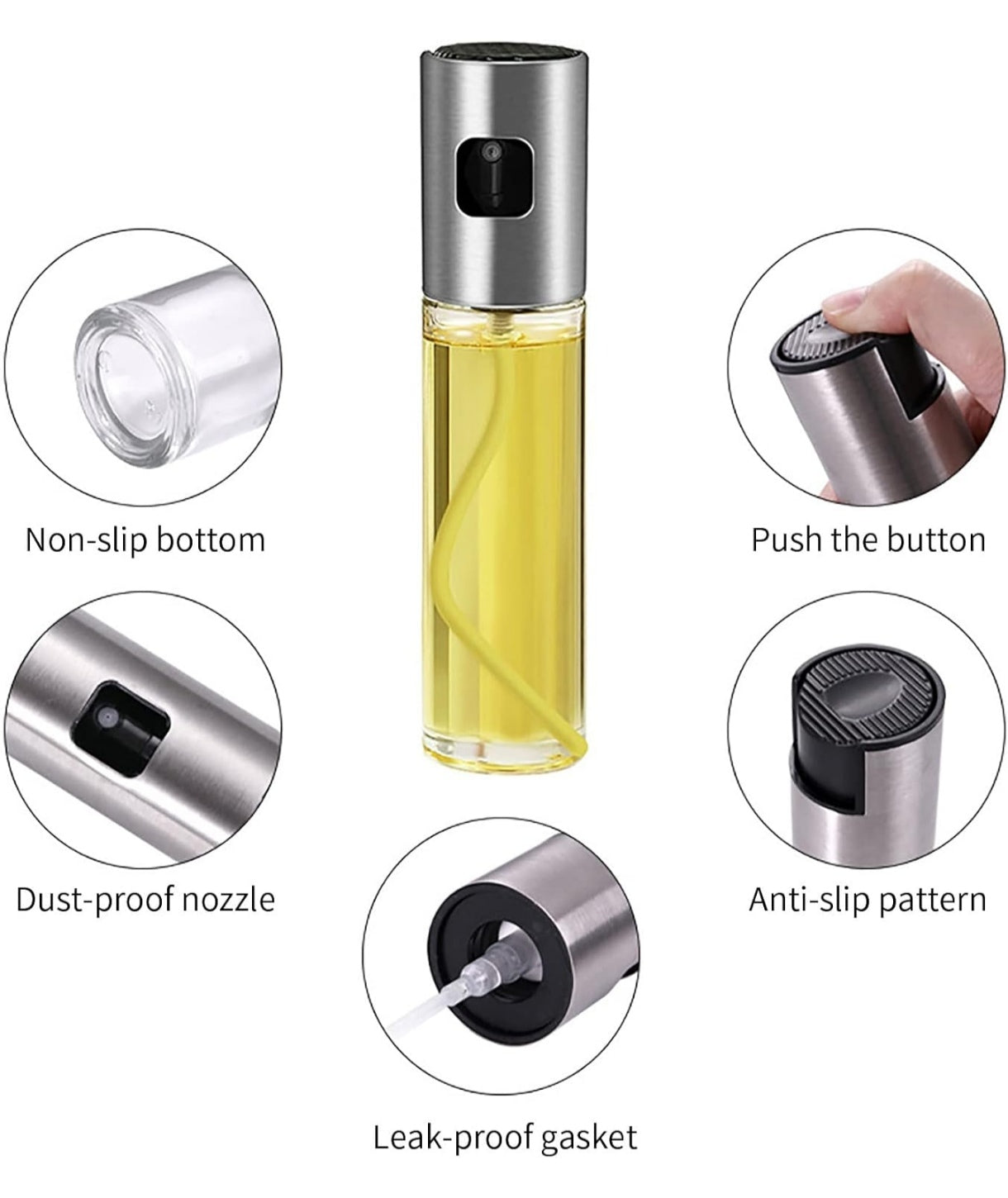 Dispensador de pulverizador de aceite de oliva Spray botella de aceite de vinagre para hornear a la parrilla de vidrio en forma de tambor de 100 ml con embudo pequeño