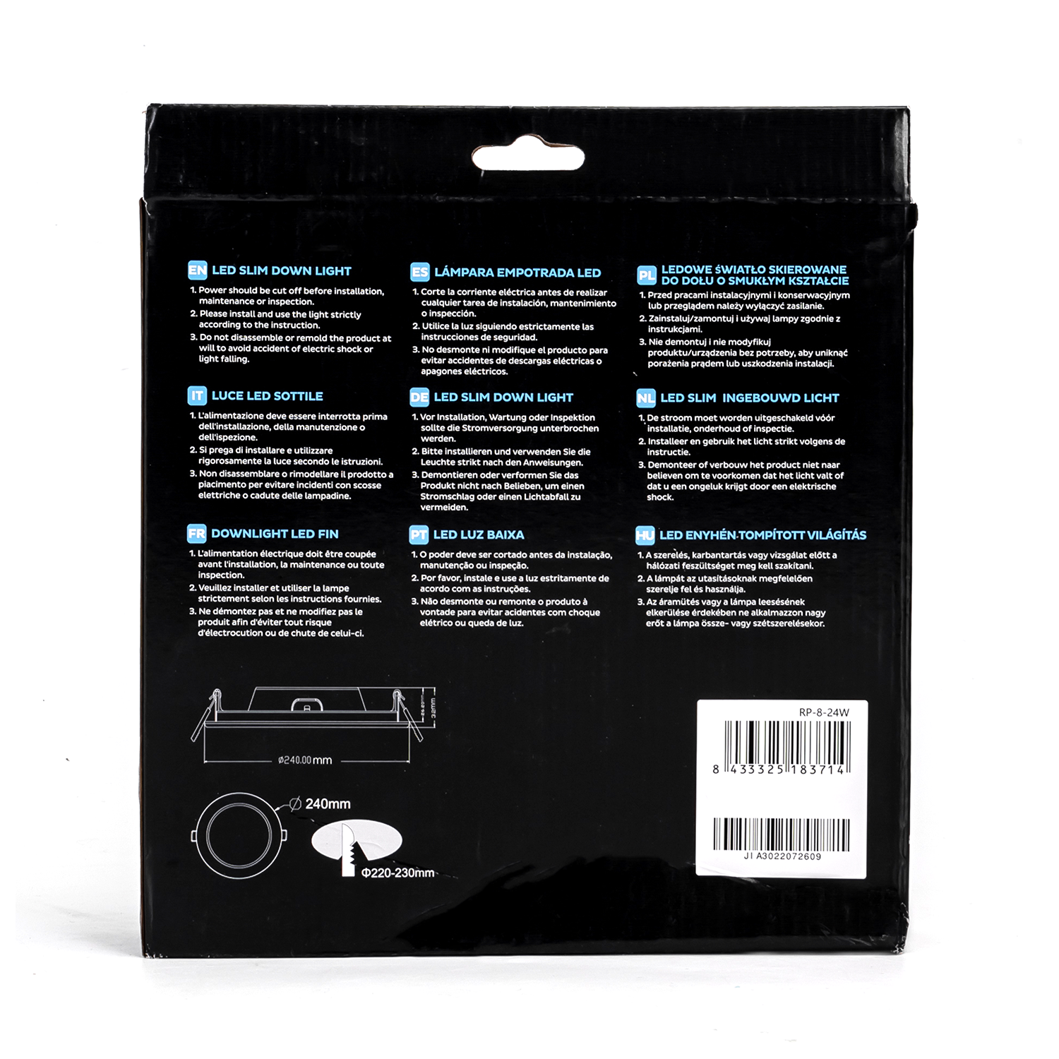 Downlight E6 LED ultrafino redondo 24W luz blanca