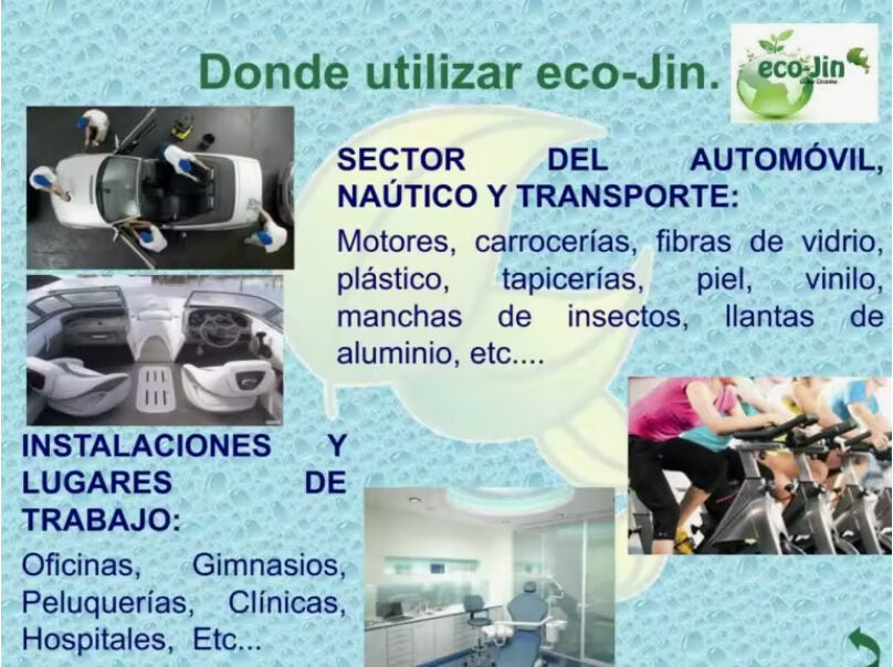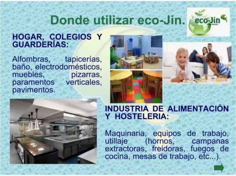 eco-Jin Es un producto creado con la única finalidad de facilitar a las personas una limpieza eficaz, duradera y fácil de aplicación en una multitud de superficies; dejando atrás la utilización de un gran número de productos específicos y peligrosos (altamente irritantes y corrosivos).
