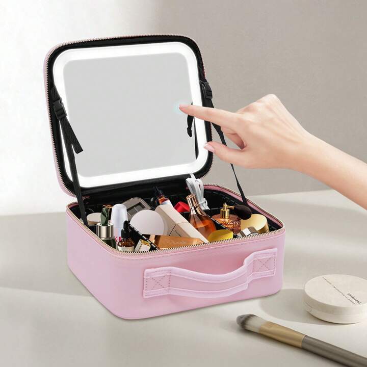Estuche de Maquillaje de Viaje con Espejo Grande Iluminado, Estuche de Viaje Profesional para Cosméticos, 3 Colores de Brillo LED, Estuche Portátil para Cosméticos, Organizador de Bolsa de Maquillaje