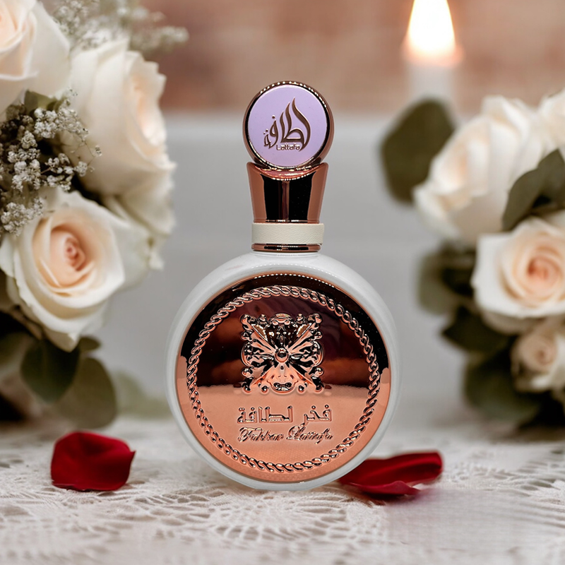 Fakhar Rose de Lattafa Perfumes es una fragancia de la familia olfativa Floral para Mujeres. Se lanzó en 2021. Las notas de salida son frutas, granada, azucena y aldehídos; las notas de corazón son nardos, jazmín, gardenia, ylang-ylang, madreselva, peonía