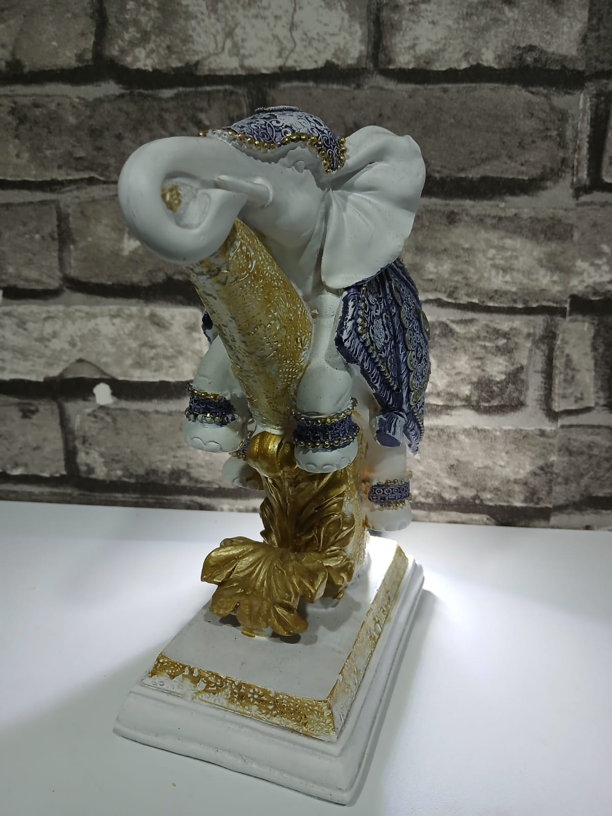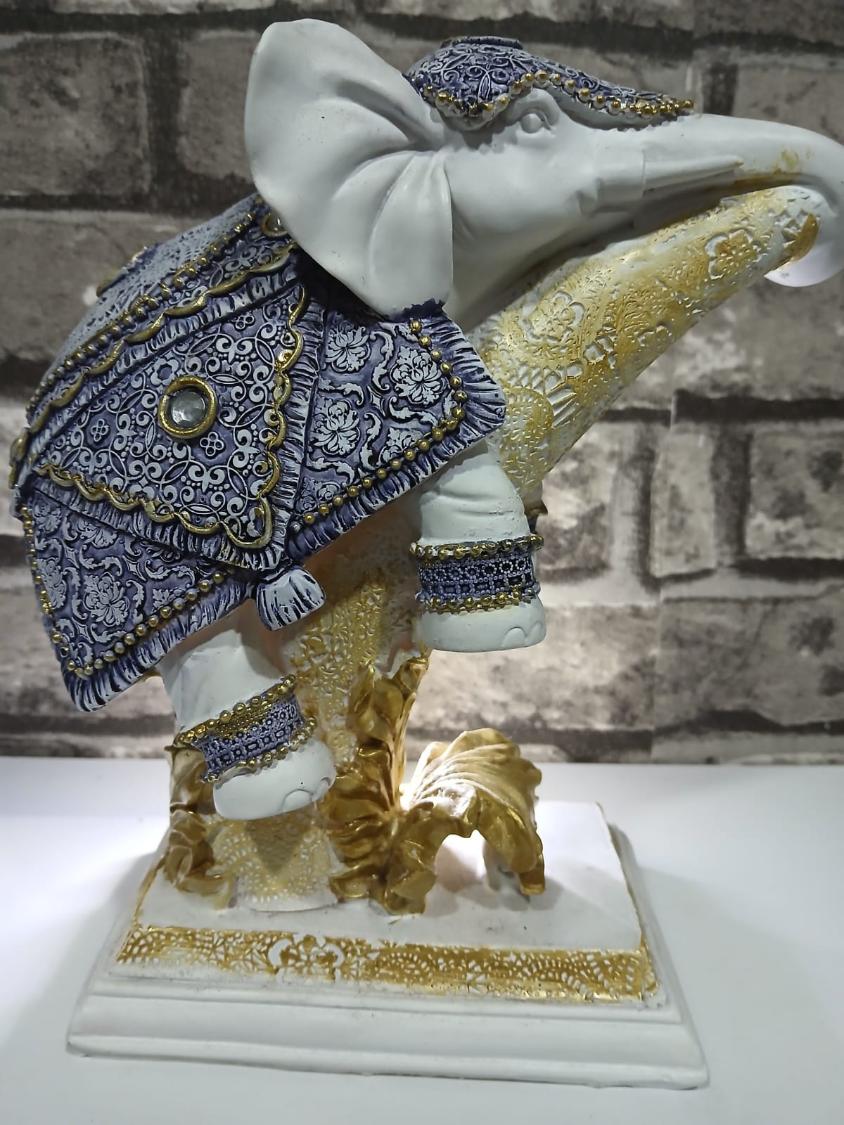 Figura Decorativa Home Decor Elefante Azul Blanco Resina 20×20 cm