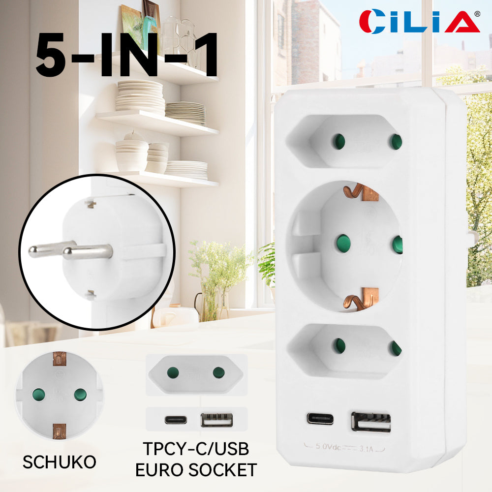 daptador 1x16a+2x10 Con obturador USB a+c 3.1A