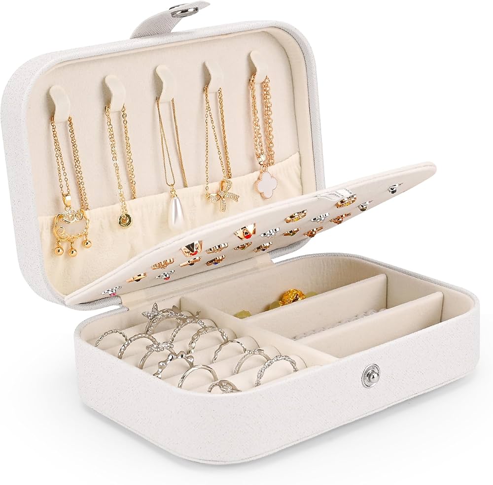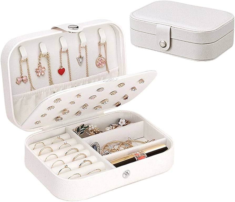 Joyero - Organizador de cosméticos - 4 compartimentos - Cajones giratorios - Espejo - Caja de joyería - Contenedor para accesorios de costura, joyas, artículos pequeños