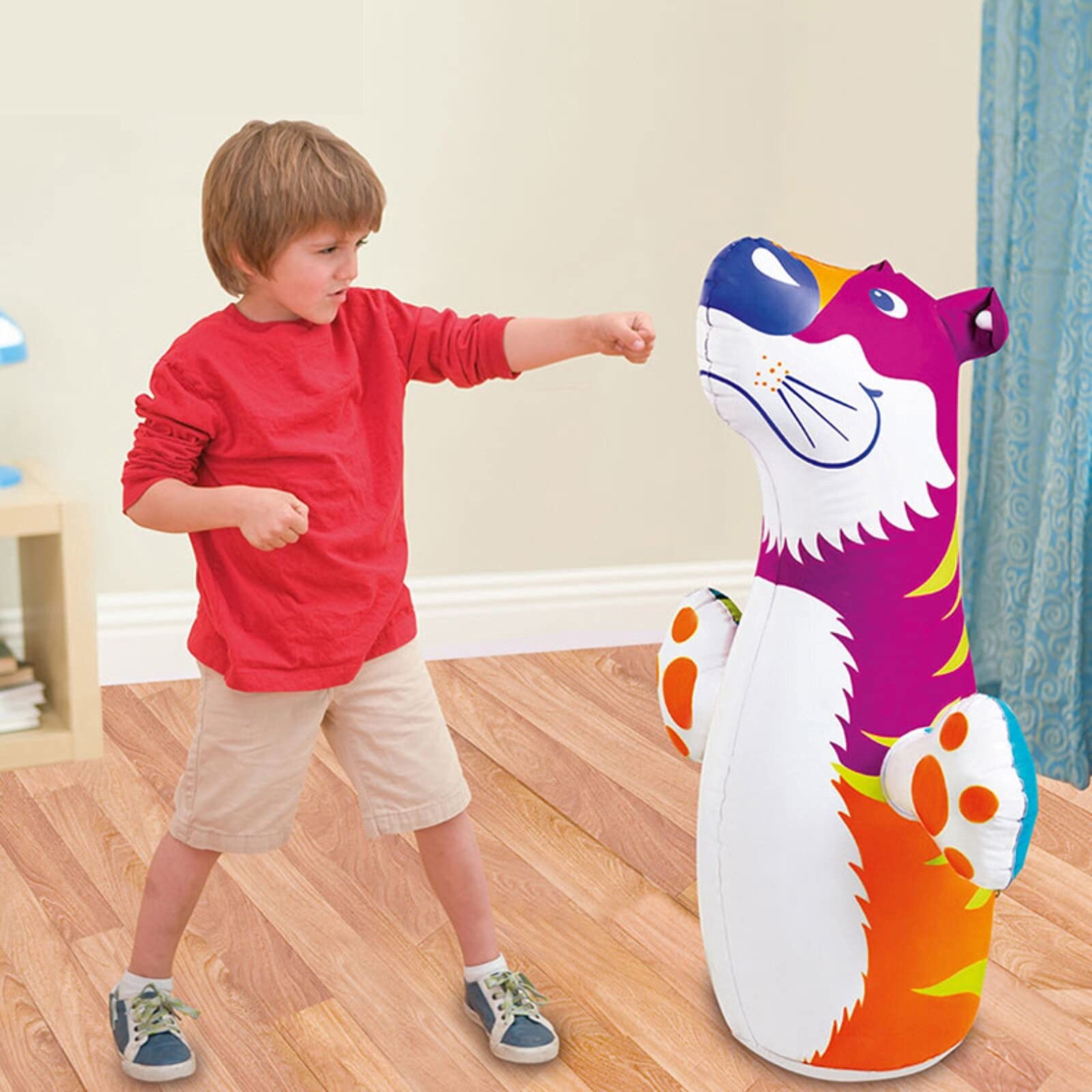 Audasi Juguete de Boxeo con Saco Inflable para Niños - Diseño de Animales de Dibujos Animados, Independiente para Interiores y Exteriores (Tigre)