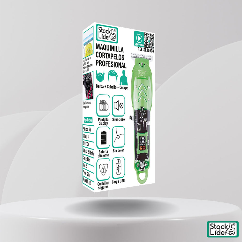 Con un cuerpo transparente que deja ver su innovador mecanismo interior, esta cortadora no solo destaca por su estética, sino también por su funcionalidad. Cuenta con un motor silencioso de 7000 RPM, y una pantalla LED que muestra el nivel de carga y alerta de lubricación, garantizando un control total durante su uso.