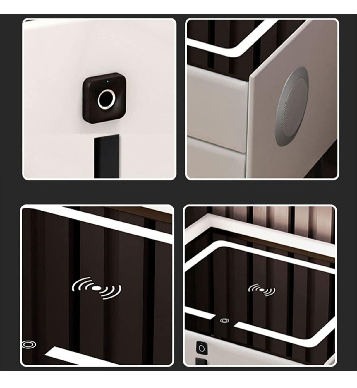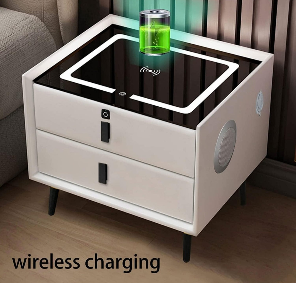 Mesita de noche LED inteligente con puerto de carga USB/inalámbrico, bloqueo de huellas dactilares y altavoz Bluetooth - Mesita de madera minimalista de 55/44/40 cm