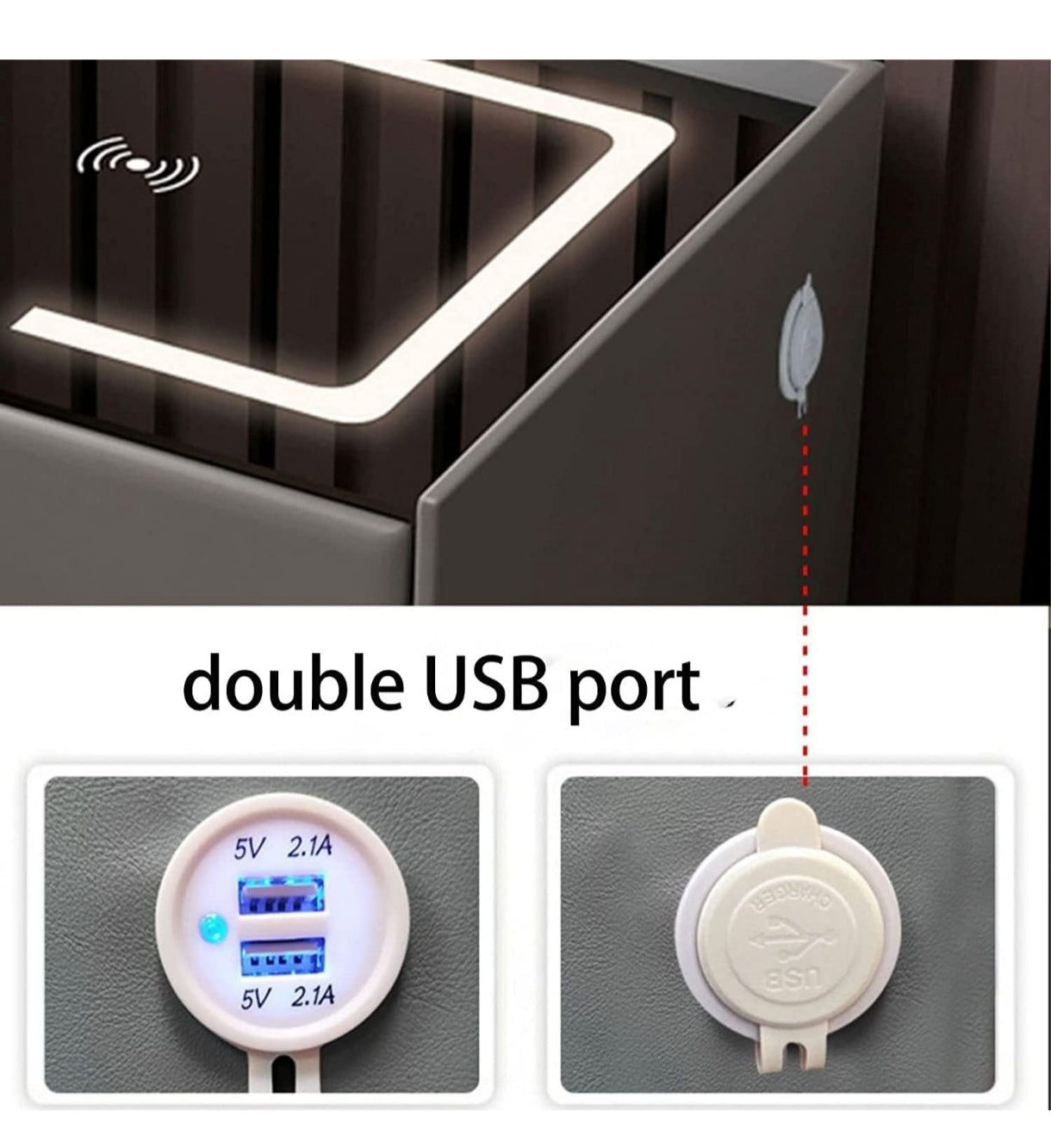 Mesita de noche LED inteligente con puerto de carga