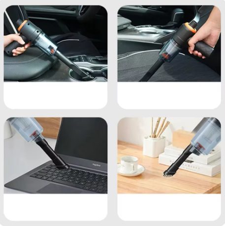 La aspiradora tiene tres usos diferentes y se puede utilizar en diferentes escenarios. Equipada con un cepillo para polvo y una herramienta para grietas, esta aspiradora de mano portátil combina diferentes accesorios para limpiar sofás, alfombras delgadas, mesas, grietas, escaleras, teclados y también es perfecta para limpiar asientos de automóviles, tapetes, consolas centrales y baúles. . Solo toma unos segundos ensamblar todas las partes de esta pequeña aspiradora de mano que hará que su hogar, oficina y automóvil estén limpios rápidamente.