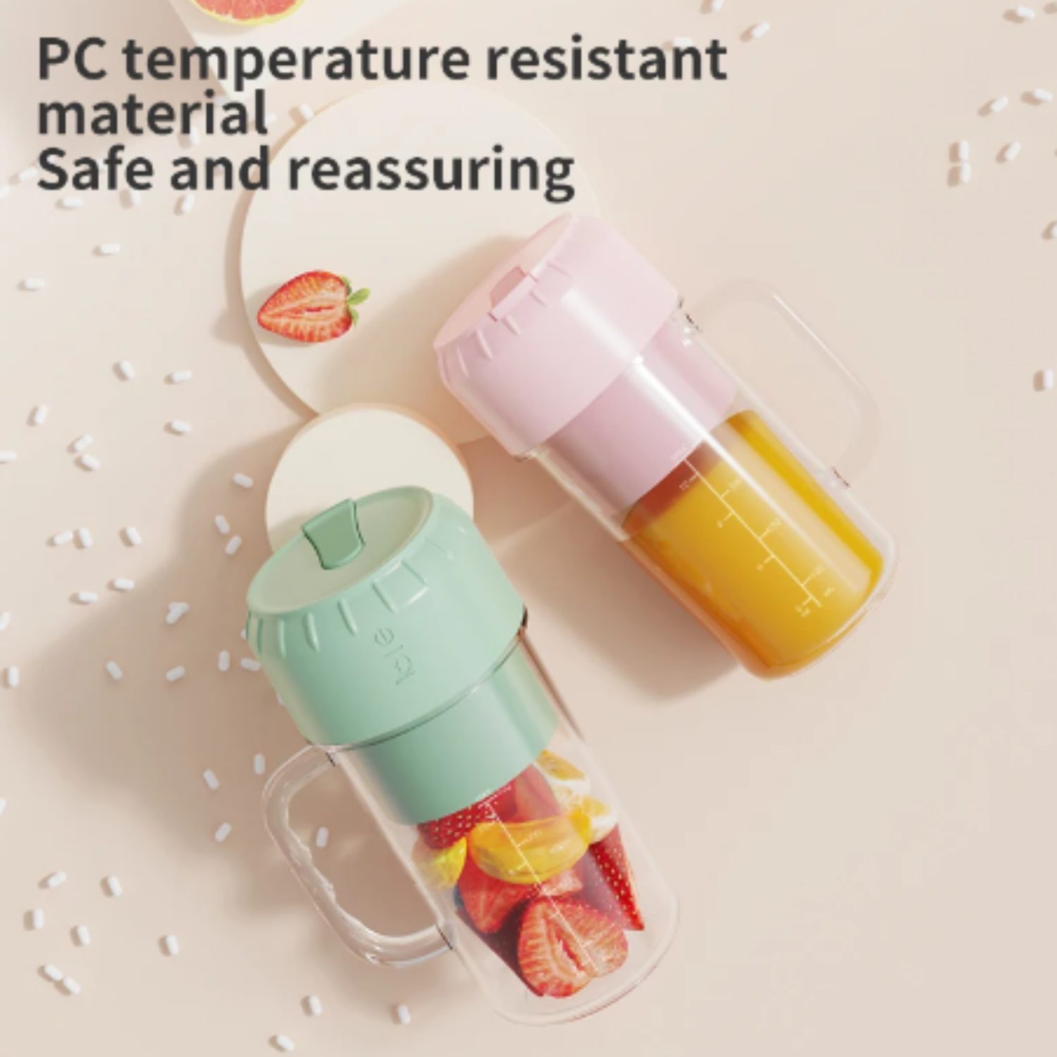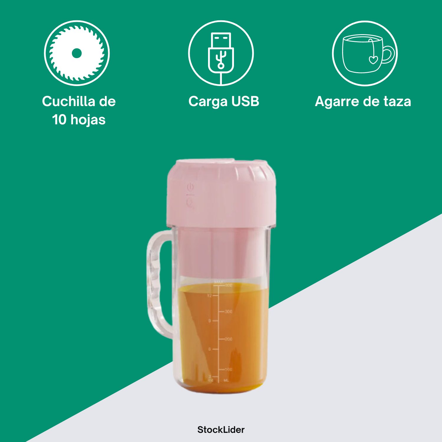 Mini batidora portátil con un motor de alta potencia. Hecha con material de grado alimenticio PP. Apto para el lavavajillas. Cuenta con un diseño compacto y ligero para usar diariamente en tu cocina o llevar contigo a cualquier sitio. Batería de larga