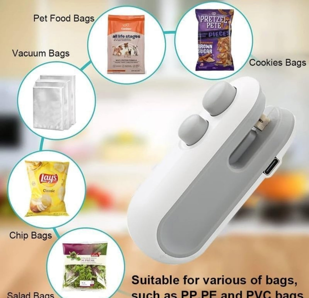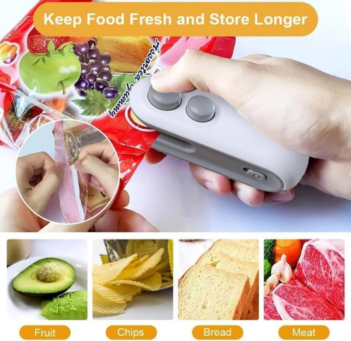 Mini sellador de bolsas, 2 en 1 recargable por USB,