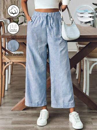 Pantalones anchos casuales con rayas para mujer con cintura con cordón talla única