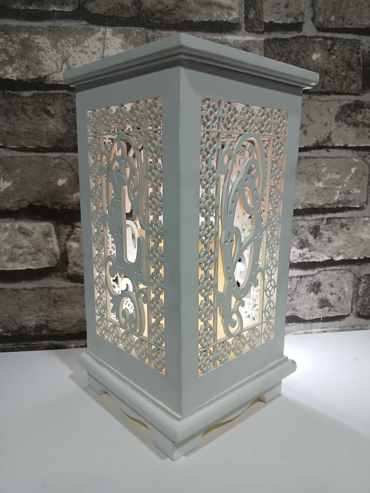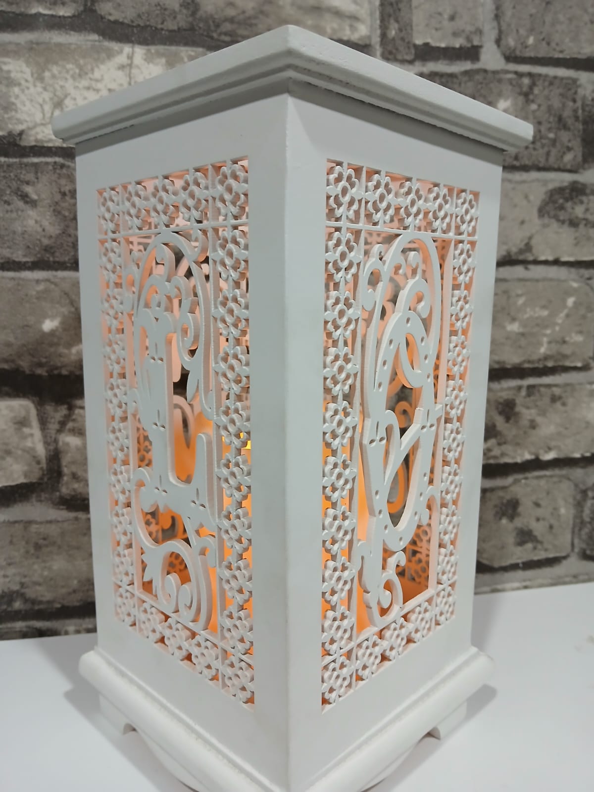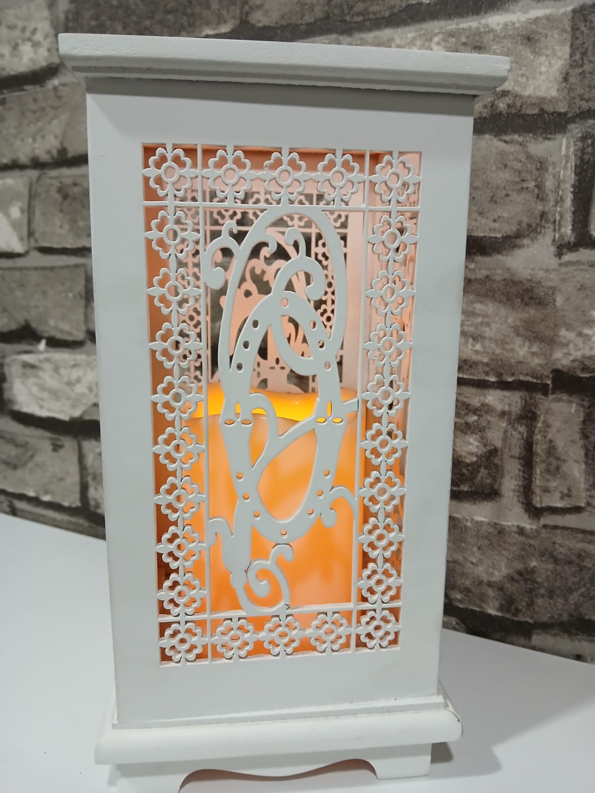 Porta vela blanco de madera con batería