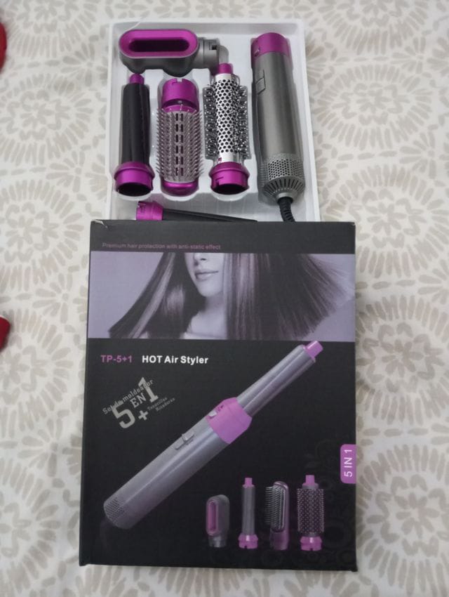 Rizador Secador de Pelo cepillo de aire caliente Voluminizador giratorio Multifuncional 5 En 1 Rodillo Girar Styler Peine Styling Curling Iron