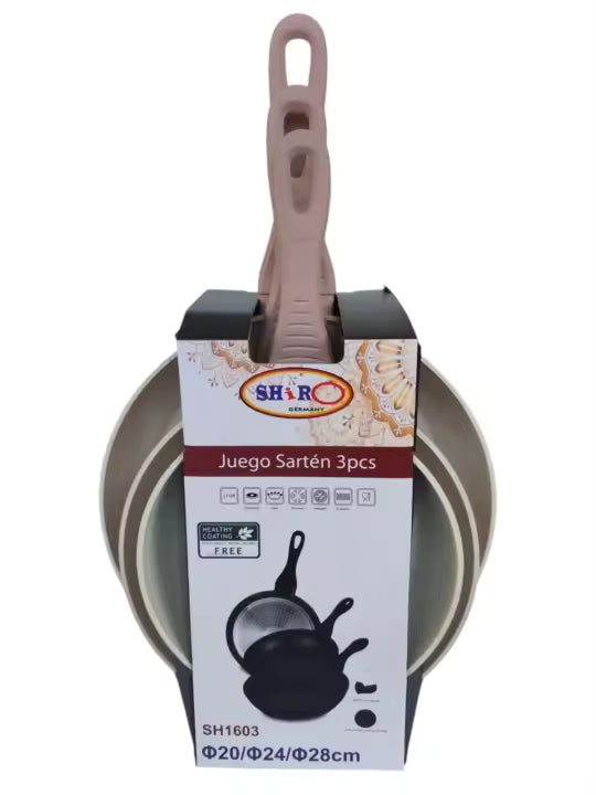 Set de 3 Sartenes 20/24/28cm Revestimiento antiadherente a la piedra Shiro - SET X3 SARTENES - COLOR ROSA