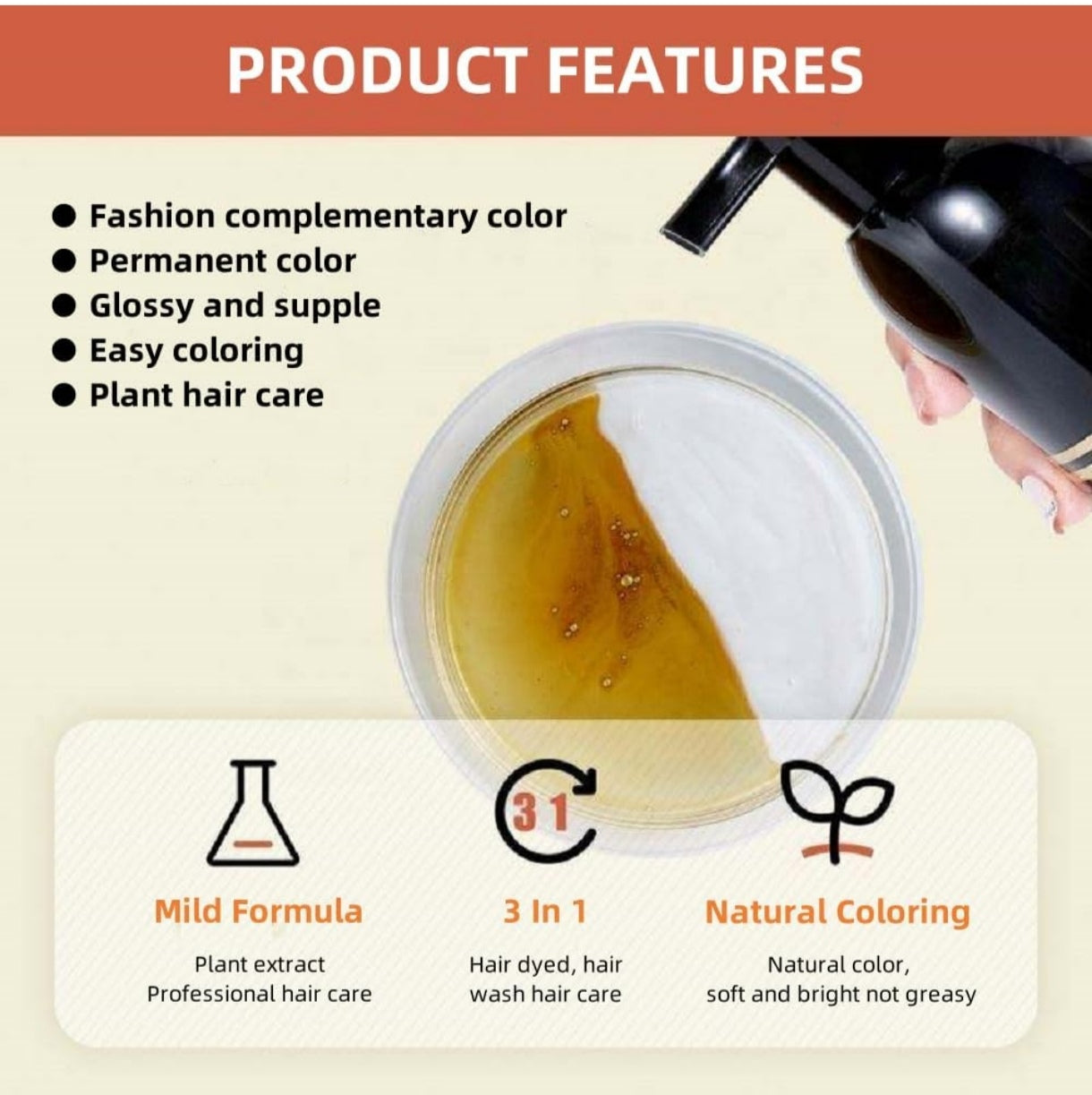 *Tinte de Color para el cabello seguro (no contiene PPD, amoníaco, sulfato ni parabeno)