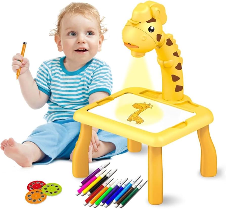 ¡Despierta la creatividad de los más pequeños con esta increíble mesa de pintura con proyector! Diseñada especialmente para niños a partir de 3 años, esta estación de arte combina diversión y aprendizaje.