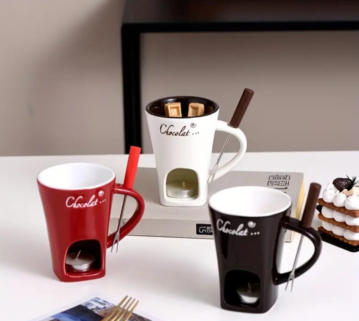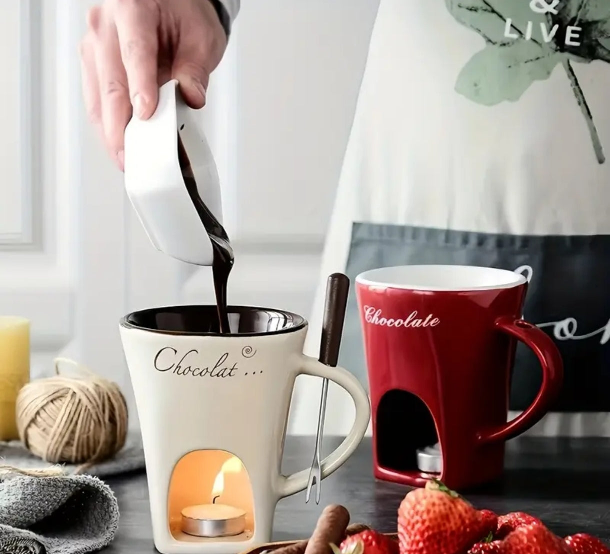 Taza de Fondue de Chocolate - de cerámica con Calentador de chocolate